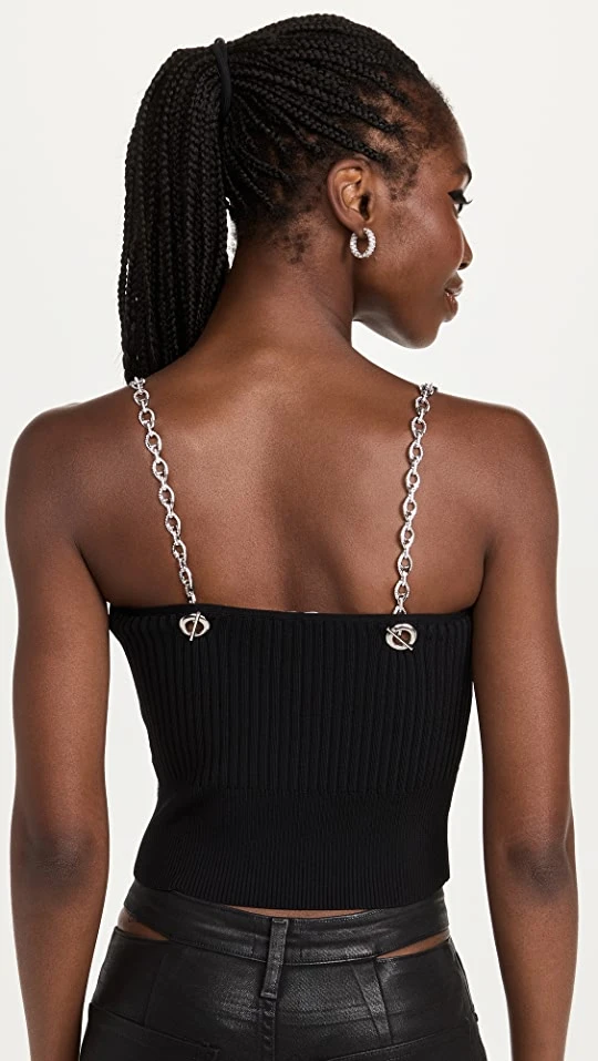 - Silver-tone chain straps with crystal embellishments