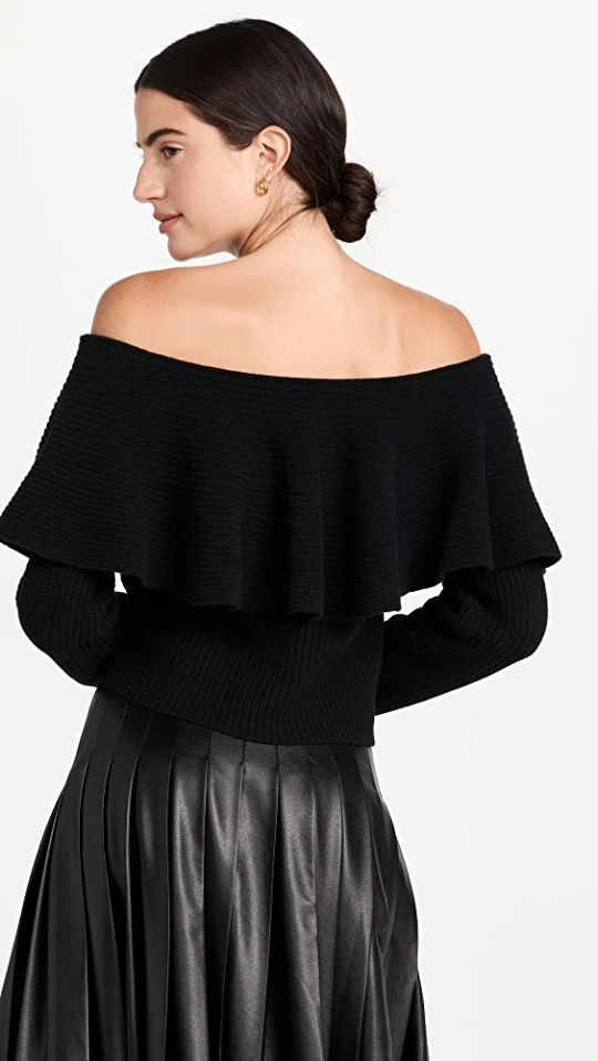 - Off-shoulder neckline with oversized flounce collar