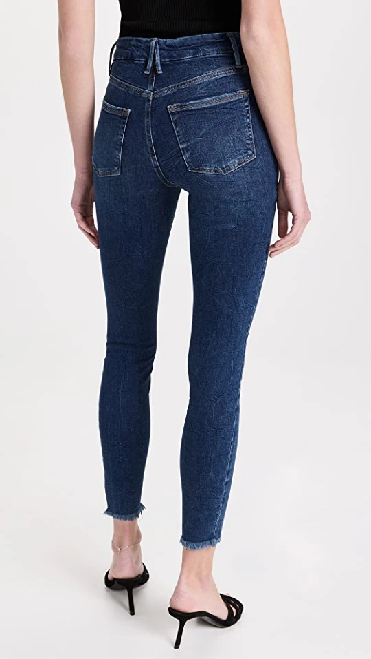 A super-skinny pair of Good American jeans with plenty of comfortable stretch, crafted from heavily faded denim and accented with distressed touches. Complement this pair with a tee or other top from the label’s collection.