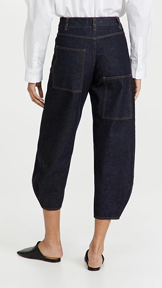 The label’s newest variation on an iconic sculpted pant. These Tibi jeans are crafted from a 3×1 Japanese left hand twill denim and feature a low-rise waist and elegant curves at the calf for an unmistakably modern look.