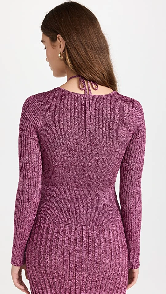 With a slender cutout below the bodice and a sweetheart neckline with halter straps, this richly colored Jonathan Simkhai knit top cuts a timelessly romantic silhouette. Go for a lovely head-to-toe look by pairing this piece with the brand’s coordinating skirt.