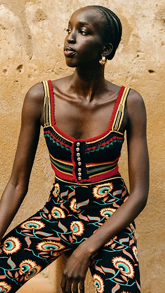 - All-over contrasting knit pattern