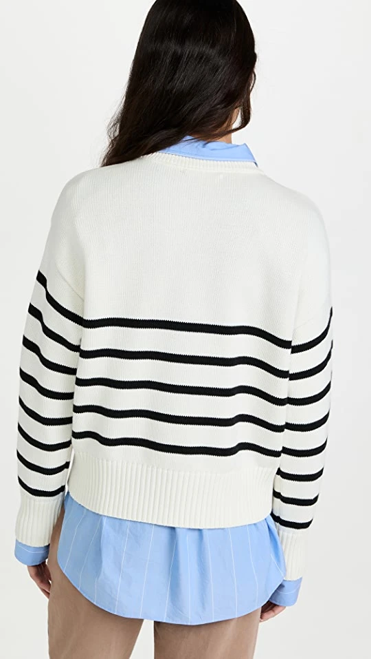 Chic stripes and an intarsia rendition of the label’s heart logo distinguish this sweater from the specialists in premium basics at AMI.