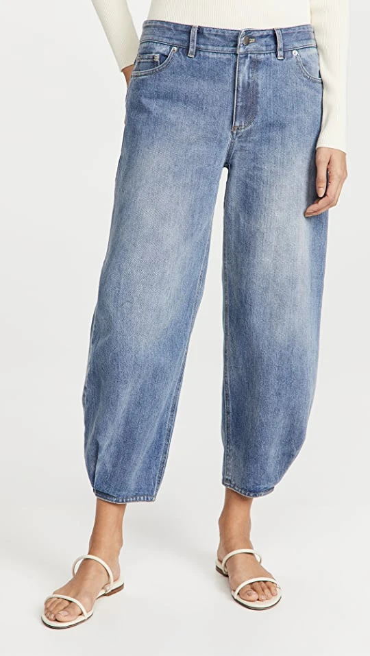 The label’s newest variation on an iconic sculpted pant. These Tibi jeans are crafted from a 3×1 Japanese left hand twill denim and feature a low-rise waist and elegant curves at the calf for an unmistakably modern look.