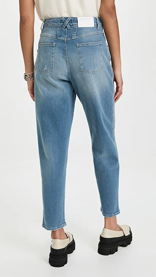 A pair of Closed’s signature Pearl jeans in heavily faded fabric, featuring the tapered cut and pleated waist that makes the style instantly unique.