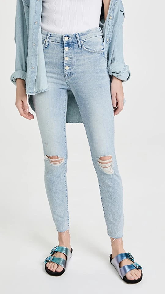- Distressed design and raw cuffs